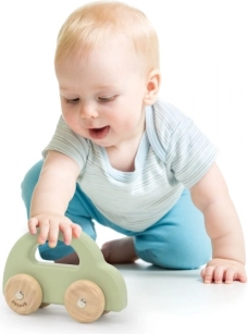 Ovo minimalističko drveno autiće u nježnoj zelenoj boji odličan je izbor kao prva igračka za razvoj pokreta i koordinacije. Zahvaljujući ergonomskom obliku male ručice ga lako hvataju i guraju po podu, dok tihi kotači osiguravaju glatko i nenametljivo kretanje.