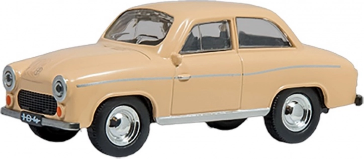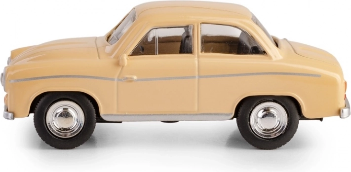 Metalni kolekcionarski model vozila Syrena 104 u elegantnoj bež boji oduševit će ljubitelje klasičnih automobila i kolekcionare. Precizna die-cast izrada s plastičnim detaljima, mjerilo 1:43, slobodno okretna kola i autentične linije karoserije. Siguran proizvod prema europskim normama za igračke.
