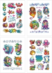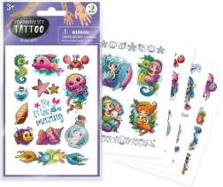 Pokažite svoju kreativnost i ljubav prema morskom životu uz privremene tetovaže koje su idealne za sve dobne skupine. Dovoljno je izrezati sličicu, pritisnuti na kožu i navlažiti vodom. Nakon 30 sekundi jednostavno uklonite papirić i tetovaža će čvrsto ostati na mjestu.