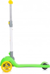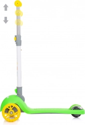 Priuštite djeci zabavnu i sigurnu vožnju s romobilom CHIPOLINO Funky u zeleno‑žutom izdanju. Lagani aluminijski okvir olakšava upravljanje, dok široka protuklizna podnica i gumene ručke pružaju sigurnost pri vožnji. Šarene LED diode u prednjim i stražnjim kotačima pale se pri kretanju i povećavaju vidljivost.