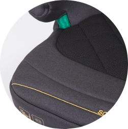Ugradnja je brza i jednostavna – možete koristiti ISOFIX + sigurnosni pojas vozila ili samo trokračni pojas. Prostrano sjedalo s ergonomskim oblikom, mekom presvlakom i naslonima za ruke osigurava udobnost i na duljim putovanjima. Navlaka se može lako skinuti i oprati, pa booster bez teškoća održavate čistim.