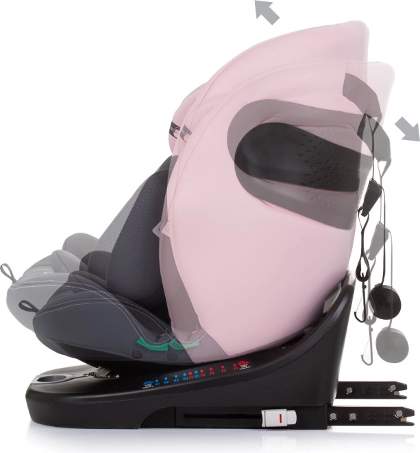 Univerzalna dječja autosjedalica za visinu 40–150 cm s ISOFIX-om, Top Tetherom i 360° okretljivom bazom za lako smještanje djeteta. Nudi vožnju suprotno i u smjeru vožnje, 5-točkaste pojaseve, zaštitu od bočnog udara i udobno podstavljanje uključujući 3D umetak. Odobreno prema R129 i-Size za sigurno putovanje od rođenja do cca 12 godina.