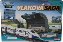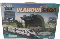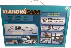 - 1× lokomotiva sa svjetlosnim efektom, 1× vagon, 14× tračnica, 1× stanica