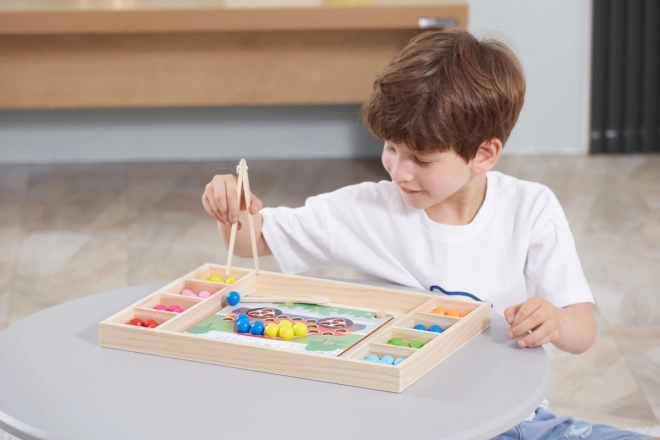Drvena igra "Ulovi i Poredaj" brenda Viga za djecu od 3 godine, koja razvija ne samo njihovu sposobnost prepoznavanja boja i uzoraka, već i koordinaciju ruke i oka te koncentraciju.