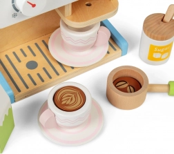 Otkrijte stilski drveni aparat za kavu marke BIGJIGS TOYS koji djeci omogućuje kroz igru oponašati svijet odraslih. Uz odvojivu ručku, dozator mlijeka i upravljačku ploču s gumbima mali baristi uživat će u mnoštvu zabave te istovremeno razvijati finu motoriku, kreativnost i društvene vještine. Dio seta su 2 šalice, šećernica i mlijeko.