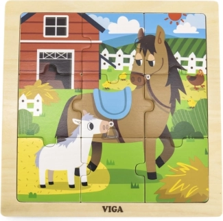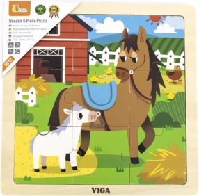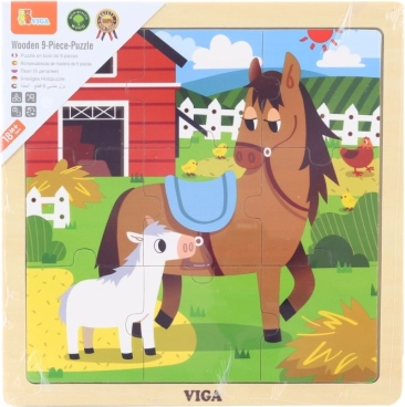 Vesele drvene puzzle s motivom konjića. Puzzle su sastavljene od 9 dijelova i prikladne su za djecu od 18 mjeseci.