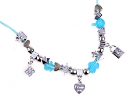 - 3 plastične narukvice, 2 uzice (ružičasta, plava), ružičaste i plave perlice, srebrni privjesci charms