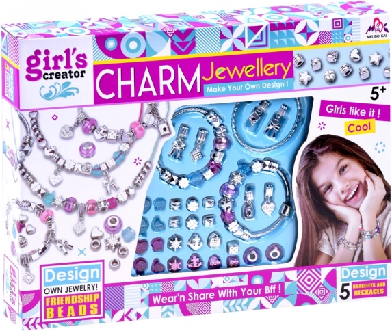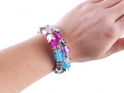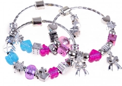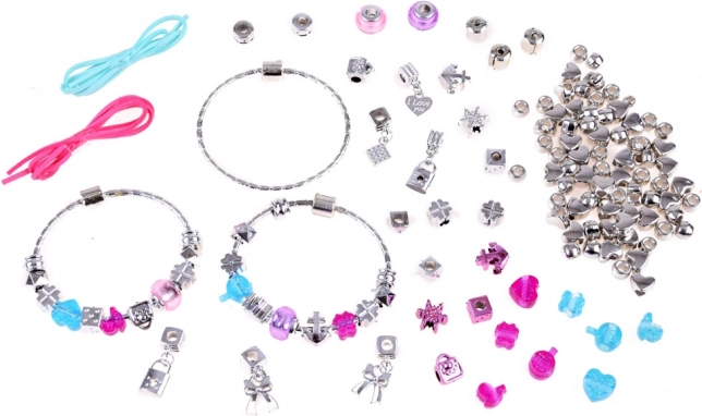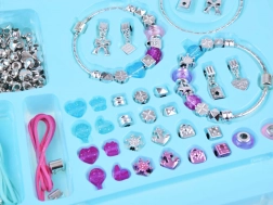 Ovaj razigrani set donosi sve što vam treba za izradu stilskih narukvica prema vlastitoj mašti. Kombinirajte ružičaste i plave perlice sa srebrnim privjescima, uskladite ih s uzicama ili nanižite na pripremljene narukvice i stvorite dodatke koji će naglasiti vaš stil.
