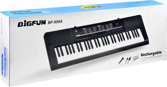 Elektronička klavijatura BF-950A s 61 tipkom idealan je odabir za početnike i djecu. Nudi 200 tonova, 200 ritmova, 70 demo skladbi, snimanje i reprodukciju, ugrađene stereo zvučnike i punjivu bateriju za sviranje bez utičnice. U paketu su mikrofon, stalak za note i zaslon za jednostavno upravljanje.