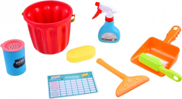 Set sadrži sve što malom pomoćniku treba: kantu, mop, metlicu, lopaticu, četku, spužvu i druge dodatke koji potiču maštu i podržavaju aktivnu igru. Vesele boje i realističan izgled privlače pažnju i pozivaju na igru svaki dan.