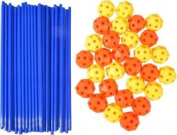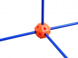 Ovaj univerzalni konstruktorski set s dugim plavim šipkama i narančasto-žutim spojnicama omogućuje djeci stvaranje trajnih trodimenzionalnih građevina. Čvrste, ne savitljive cjevčice i stabilne višekutne spojnice drže oblik i kod većih konstrukcija. Dio paketa je i knjižica s idejama za brzi početak.