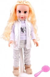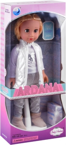 Upoznajte lutku Adriannu – stilsku ljepoticu koja će uljepšati svako dječje kraljevstvo. Ima dugu, mekanu plavu kosu pogodnu za češljanje, izražajne oči sa uvijenim trepavicama i moderan outfit: perlasti prošiveni prsluk, sjajne tajice, bijeli top sa srebrnim srcem i mekane cipelice. Zahvaljujući pokretnim udovima odlično pozira na priloženom postolju.