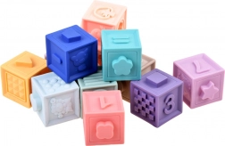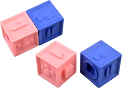 Mekane senzoričke kocke u pastelnim bojama potiču otkrivanje dodirom i vidom. Svaka kocka nosi reljefne oblike, životinje i brojke koji stimuliraju osjete i na razigran način uče prepoznavanju oblika, boja i prvih brojeva. Zahvaljujući podatnoj strukturi prikladne su i kao siguran dodatak za grickanje.