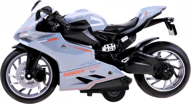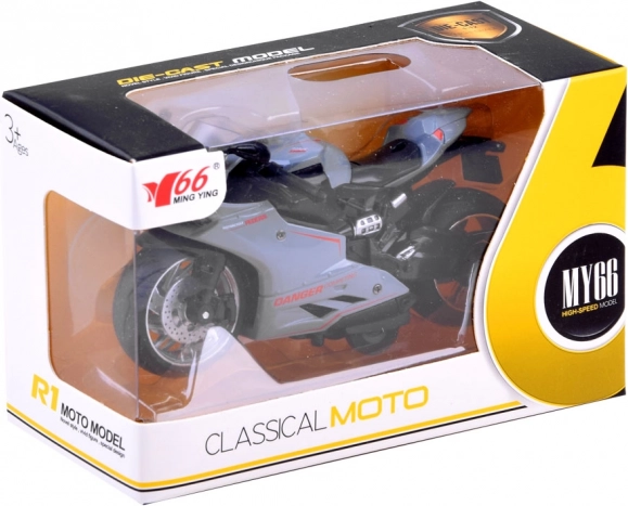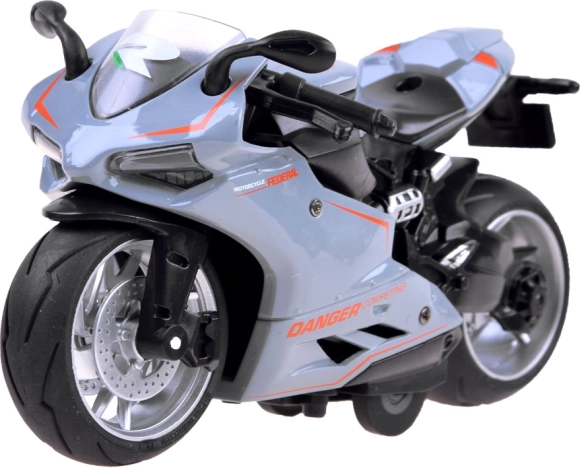 Motor s napinjačem je igračka za svakog malog i velikog ljubitelja vozila na dva kotača. Trkač je izrađen od metala s plastičnim detaljima. Veliki kotači s gumenim gumama poboljšavaju trakciju. Bonus je amortizer u stražnjem kotaču. Motor vozi nakon napinjanja opružnog sustava. Dovoljno je motor postaviti na ravnu površinu, povući unatrag i pustiti! Trkač će krenuti naprijed! Realistički reproducirani trkaći motor pružit će puno zabave svakom djetetu. Motor je vrlo pažljivo i estetski izrađen.