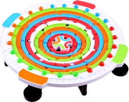 Igra je izrađena od plastike s krugovima u različitim jarkim bojama (plava, zelena, crvena, narančasta), koje privlače pažnju i motiviraju na igru.