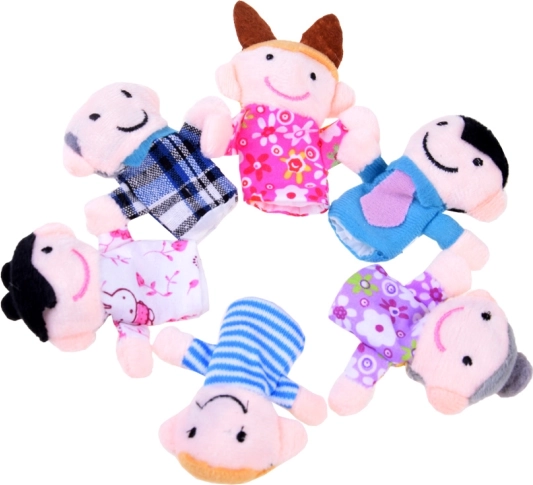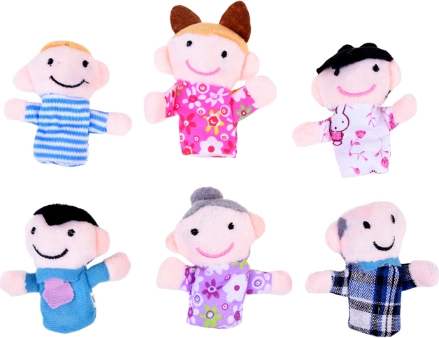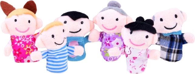 Set sadrži šest prstnih lutaka - djeda, baku, majku, oca, dječaka i djevojčicu.