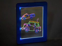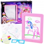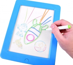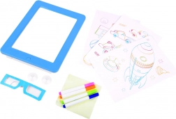 Osvijetljena ploča izvrstan je alat za razvoj mašte, kreativnosti i fine motorike. Djeca mogu crtati vlastite motive ili lako preslikati predloške s priloženih kartica, a zatim ih umetnuti u okvir s LED osvjetljenjem. S 3D naočalama njihovi radovi dobivaju prostorni efekt koji oduševljava.