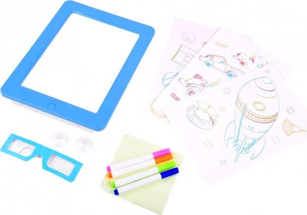 Uz priložene 3D naočale crteži oživljavaju u prostoru. Djeca će vidjeti svoje rakete, aute ili likove u dojmljivom 3D efektu.