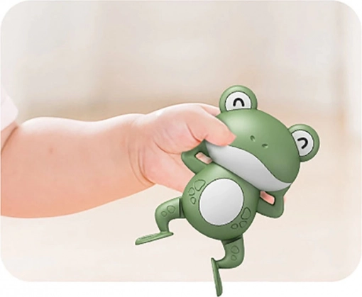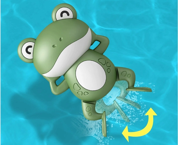 Zahvaljujući mehanizmu na leđima, koji treba naviti, žaba će se nakon uranjanja u vodu početi kretati i plivati, što će zabaviti djecu na duže vrijeme. Igračka potiče kreativnost i omogućava djeci stvaranje različitih priča s glavnim junakom žabom.