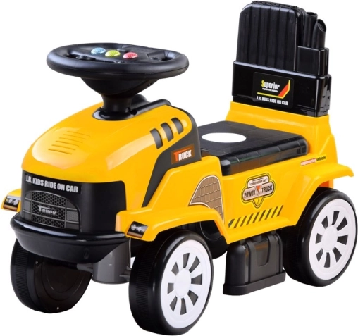Guralica traktor izrađena je od kvalitetne, lagane plastike u živim bojama. Zahvaljujući kompaktnim dimenzijama, djeca će uživati u vožnji i u stanu i u vrtu. Stabilna konstrukcija, naslon za leđa i stražnja zaštita protiv prevrtanja unatrag povećavaju sigurnost tijekom igre.