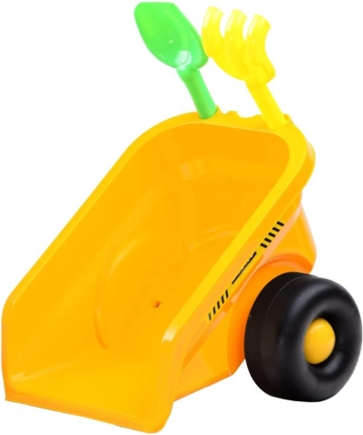 Odvojiva prikolica s držačima za spremanje priloženih grabičica i lopatice potiče maštu i igru na gradilištu ili u pijesku.