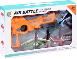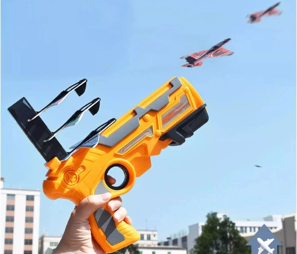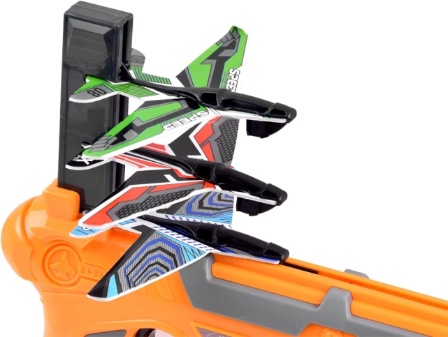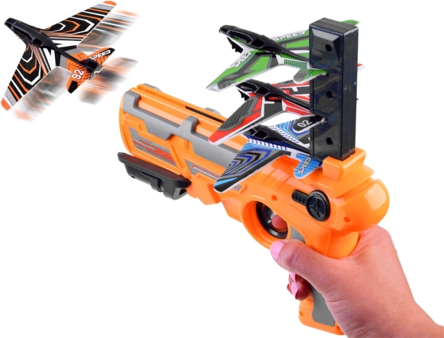 Veliki pištolj za lansiranje aviona naša je najnovija ponuda. Lansirano uređaj ima spremnik u koji se mogu napuniti tri aviona. Da biste svaki put mogli ispucati jedan avion, spremnik pištolja morate ponovno napuniti. Nakon svakog lansiranja spremnik se spušta, tako da možete ispucati do tri aviona u jednom krugu. Oružje je potpuno izrađeno od lagane plastike, a avioni su od pjenastog EPP-a. Zbog svoje lakoće, avion može letjeti na udaljenost od nekoliko metara. Svaki ljubitelj natjecanja u pucanju koji ima takav lansirni uređaj moći će trenirati najdulje letove i zatim organizirati natjecanja s prijateljima. <\/span><\/p>