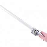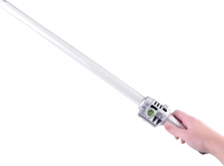 Ovaj svjetlosni mač s realističnom srebrnom drškom i crvenim gumbom donosi djeci autentične doživljaje galaktičkih dvoboja. Nakon aktivacije pali se zeleno LED svjetlo i pokreću se zvučni efekti koji pojačavaju napetost i zabavu tijekom igre.