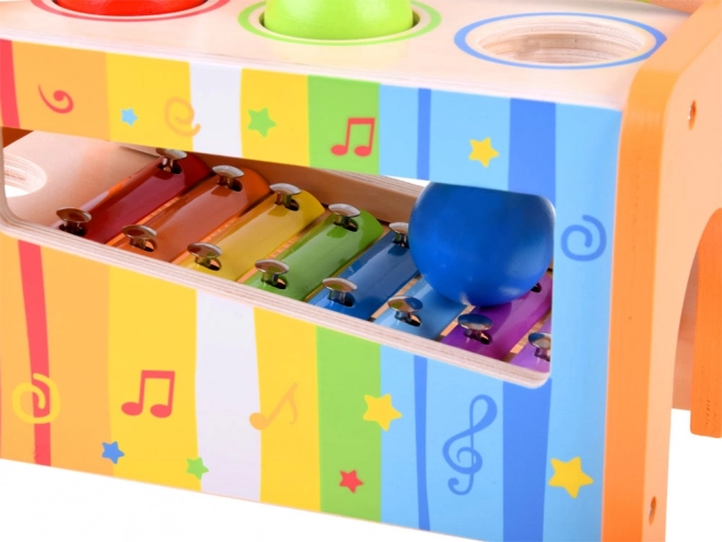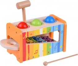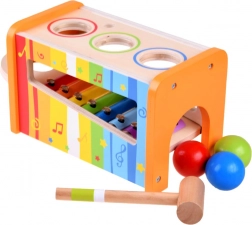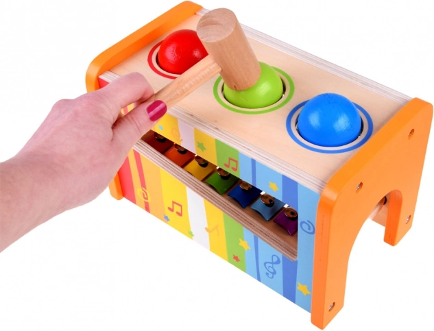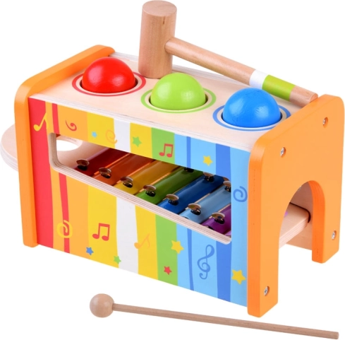 Djeca mogu čekićem zabijati šarene kuglice kroz otvore u konstrukciji, koje pri padu na ksilofon proizvode različite zvukove. Ova aktivnost razvija motoričke vještine i glazbenu percepciju.