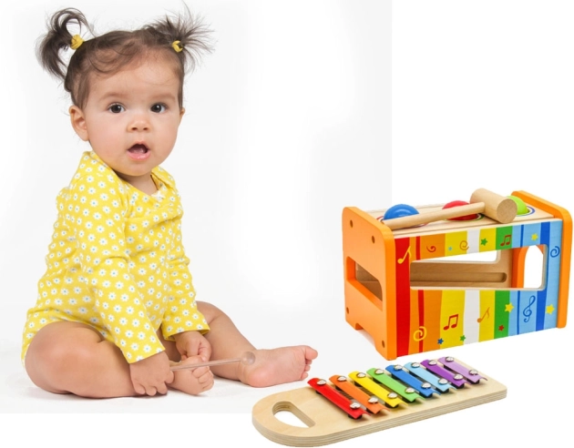 Drveni ksilofon i čekić ne samo da potiču glazbene, već i motoričke vještine djece.