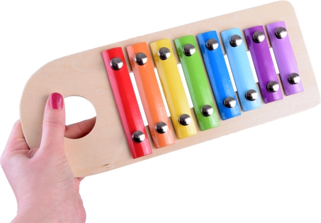 Ksilofon je šareno dizajniran kako bi privukao pažnju djece i potaknuo ih na istraživanje zvukova.