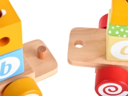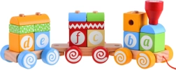 Odvojivi dijelovi vlakića omogućuju djetetu učiti prepoznavati oblike, slagati ih i graditi vlastite vagone. Na svakom bloku nalazi se slovo, što pomaže zadržati izgled prvih slovâ u pamćenju.
