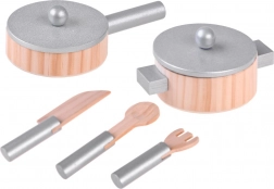 - Drveni pribor: lonac s poklopcem, tava s poklopcem, drveni nož, žlica i vilica.
