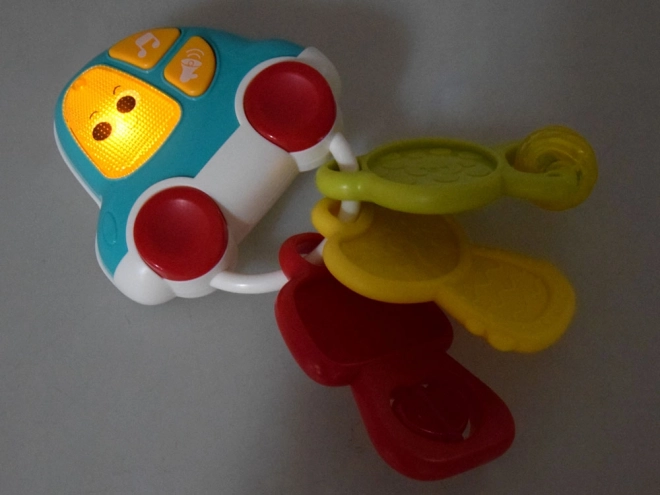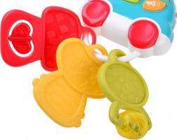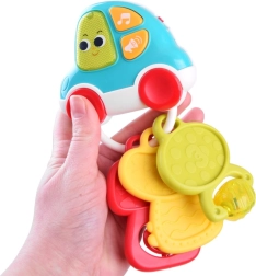 Tražite igračku koja će zabaviti i istodobno podržati razvoj vaše bebe? Interaktivni ključevi kombiniraju glazbu, svjetlo i različite teksture za bogate osjetilne poticaje. Dijete će uživati u 5 veselih melodija, stvarnim zvukovima automobila (otvaranje, truba, vožnja unatrag, rad motora, kočenje) i kratkim šaljivim efektima koje prati bljeskajuće svjetlo. Laka konstrukcija i ergonomski oblik prilagođeni su malenim ručicama.