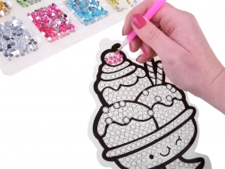 Stvarajte živopisne slike i naljepnice s motivima slastica pomoću većih “dijamanata” koji se lako podižu aplikatorom i precizno polažu na samoljepljive šablone. Djeca na razigran način uvježbavaju koordinaciju oko–ruka, koncentraciju i estetski osjećaj – a rezultat su prekrasne dekoracije za prozor, ogledalo, bilježnicu ili policu.