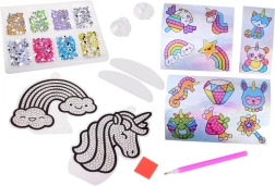 Izradite 2 velike dekoracije za postavljanje ili vješanje i 12 glitter naljepnica s motivima duge i jednoroga. Savršeno za prozore, bilježnice i poklone.