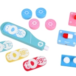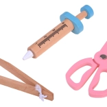 Šprica, škare, pinceta i toplomjer izrađeni su od izdržljivog drva s ugodnom završnom obradom. Potiču finu motoriku i sigurnu igru.