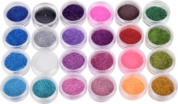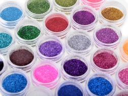 Raznobojne šljokice u prozirnim posudicama omogućuju miješanje nijansi i stvaranje jedinstvenih, sjajnih efekata na koži.