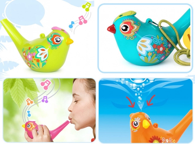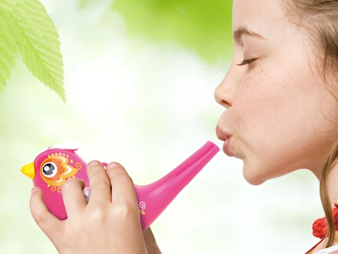 Ova vesela ptičja zviždaljka radi kao klasična zviždaljka i kao vodena glazbena igračka. Nakon ulijevanja vode u otvor na gornjem dijelu, pri puhanju čarobno cvrkuće – visinu i boju tona određuju količina vode i jačina puhanja. Bez vode proizvodi jasan i glasan zvuk.
