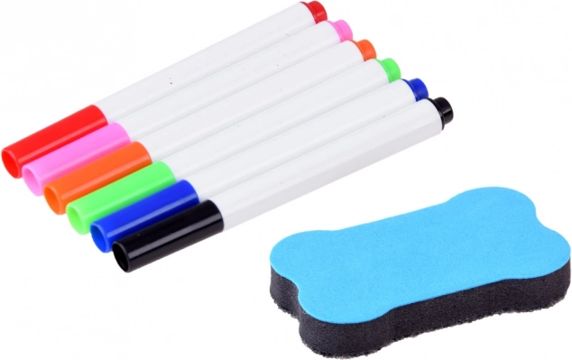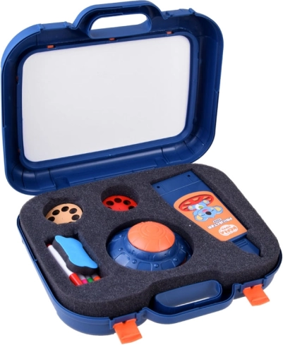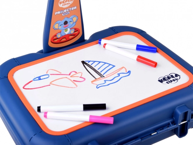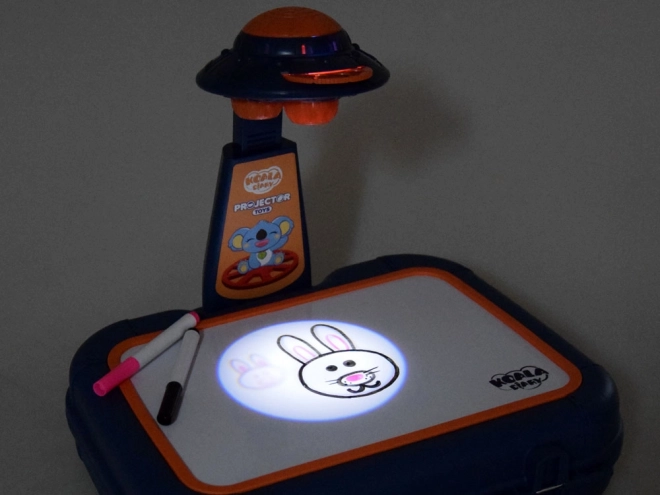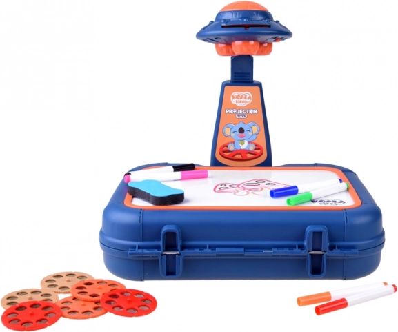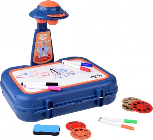 Kovčeg s površinom za crtanje, projektor-lampica, podesiva ruka, 6 šablona sa slikama, spužvica za brisanje i 6 flomastera.