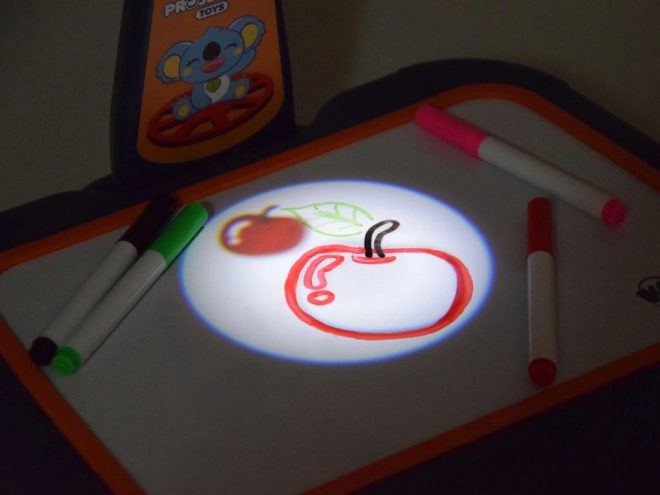 Projektor nudi dva načina rada: kao projektor za prikaz slika ili kao lampica. Dovoljno je pomakom gumba promijeniti funkciju. Set sadrži 48 različitih slika na 6 kružnih šablona. Slike su podijeljene u kategorije poput vozila, povrća, voća, životinja, sporta i odjeće, što jamči sate zabave. Projicirane uzorke možete crtati na suho brisivu površinu ili na običan papir.