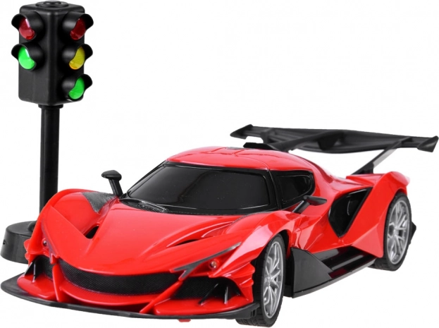 Dio pakiranja je i semafor koji obogaćuje igru prometnim elementima i uči djecu osnovama prometnih pravila. Auto je izrađen od izdržljive plastike, ima pogon na stražnjoj osovini i podesivu zaturenost prednjih kotača za stabilniju vožnju.
