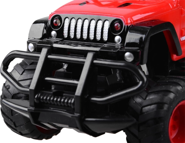 Auto ima velike teksturirane gume i čvrstu zaštitnu mrežu koja omogućuje kretanje čak i na neravnim terenima.