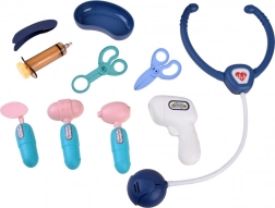 Set uključuje razne medicinske pomagala kao što je stetoskop, koji zahvaljujući već montiranim baterijama možete čuti otkucaje srca, ili termometar koji nakon pritiska ispušta kratak zvuk i svijetli.