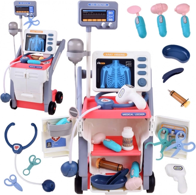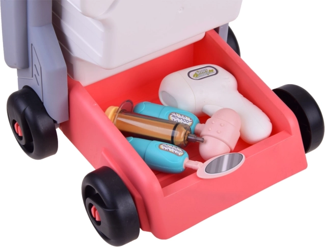 Ova medicinska kolica u potpunosti su izrađena od visokokvalitetne plastike i dizajnirana su za raznobojnu i zabavnu igru. Svi alati su vjerna kopija pravih medicinskih instrumenata i imaju prijateljski oblik i vesele boje.