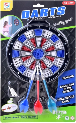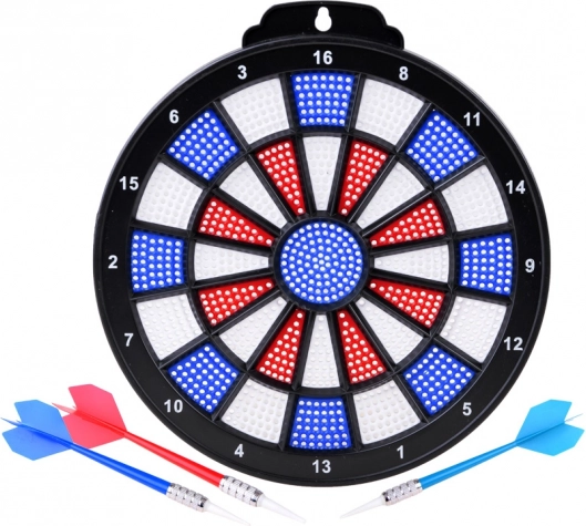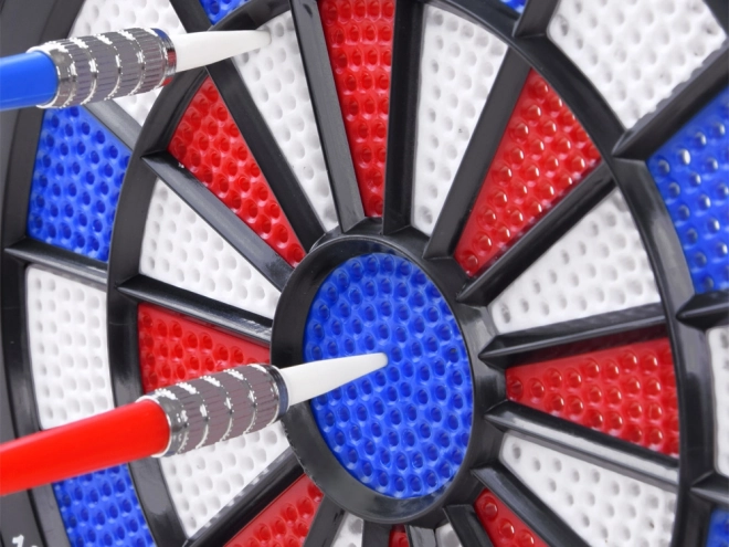Pikado ploča je dizajnirana za rekreacijsko korištenje s crvenim, plavim i bijelim segmentima za precizno ciljano gađanje i bodovanje.