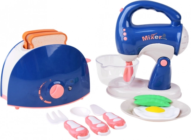Dječji kuhinjski set je savršen izbor za sve male kuharice i kuhare. Mikser i toster izrađeni su od izdržljive plastike u nježnom dizajnu boja što osigurava sigurnu i ugodnu igru. Ovaj set donosi fantastični realizam u svaku malu kuhinju zahvaljujući vjerodostojnim zvučnim efektima i osvjetljenju koje signalizira uključenost aparata.
