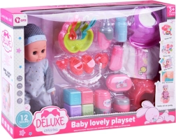 Set uključuje bočicu, dudu, pelenu, robicu i mnoge druge dodatke za kompletno iskustvo igre s lutkom.