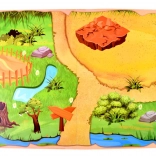 Igraća podloga uključuje različite terene kao što su trava, staza i jezerce, koji obogaćuju doživljaj djece u igri.