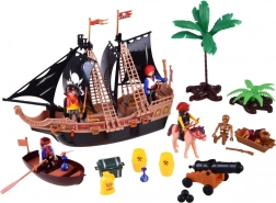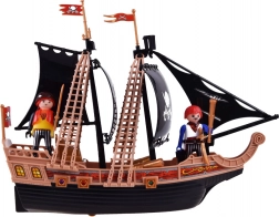 Krenite u pustolovinu na otvorenom moru s ovim bogato opremljenim piratskim setom. Veliki brod s crnim jedrima ima skrivene kotačiće za lako kretanje i gumb koji aktivira svjetlosne i zvučne efekte. Tu je i top koji puca s kuglicama, 4 figurice, čamac, blago i mnoštvo dodataka za kreativnu igru već od 3 godine.