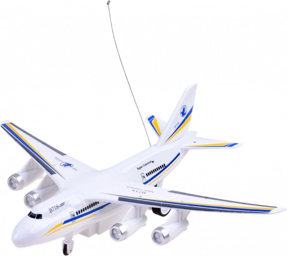 Zabavan RC avion za male ljubitelje zrakoplovstva upravljan upravljačem u obliku volana. Igračka ima svjetlosne efekte (crvene i plave) i lako se kreće po ravnim površinama. Može voziti naprijed i natrag te skretati desno i lijevo. Čvrsta plastična izrada u bijeloj boji s detaljima modela B718.